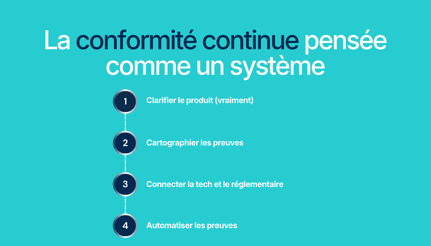 Une infrastructure unique qui relie le réglementaire, le produit et la tech pour bâtir des systèmes de conformité durables.
