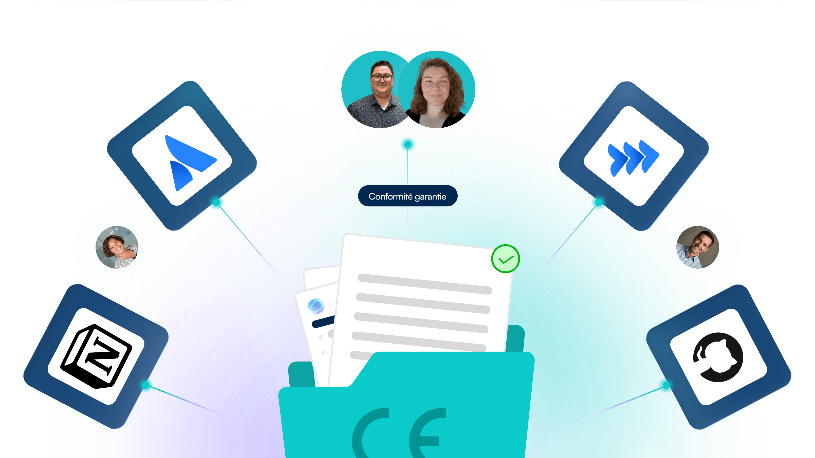 Nous n’ajoutons pas d’outil. Nous structurons l’existant et connectons vos systèmes, Jira, Confluence, Notion, GitHub, pour une adoption immédiate et une conformité sans rupture.